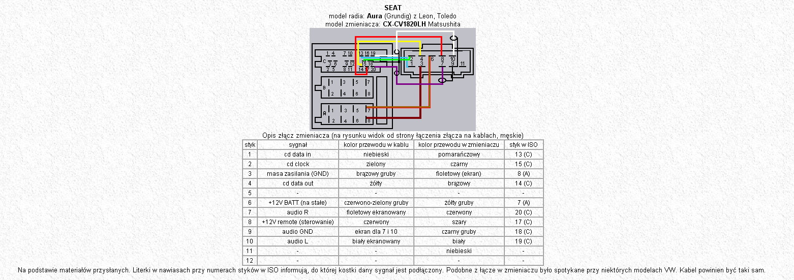 Po lewej stronie jest gniazdo w radiu a po prawej wtyczka do zmieniarki.