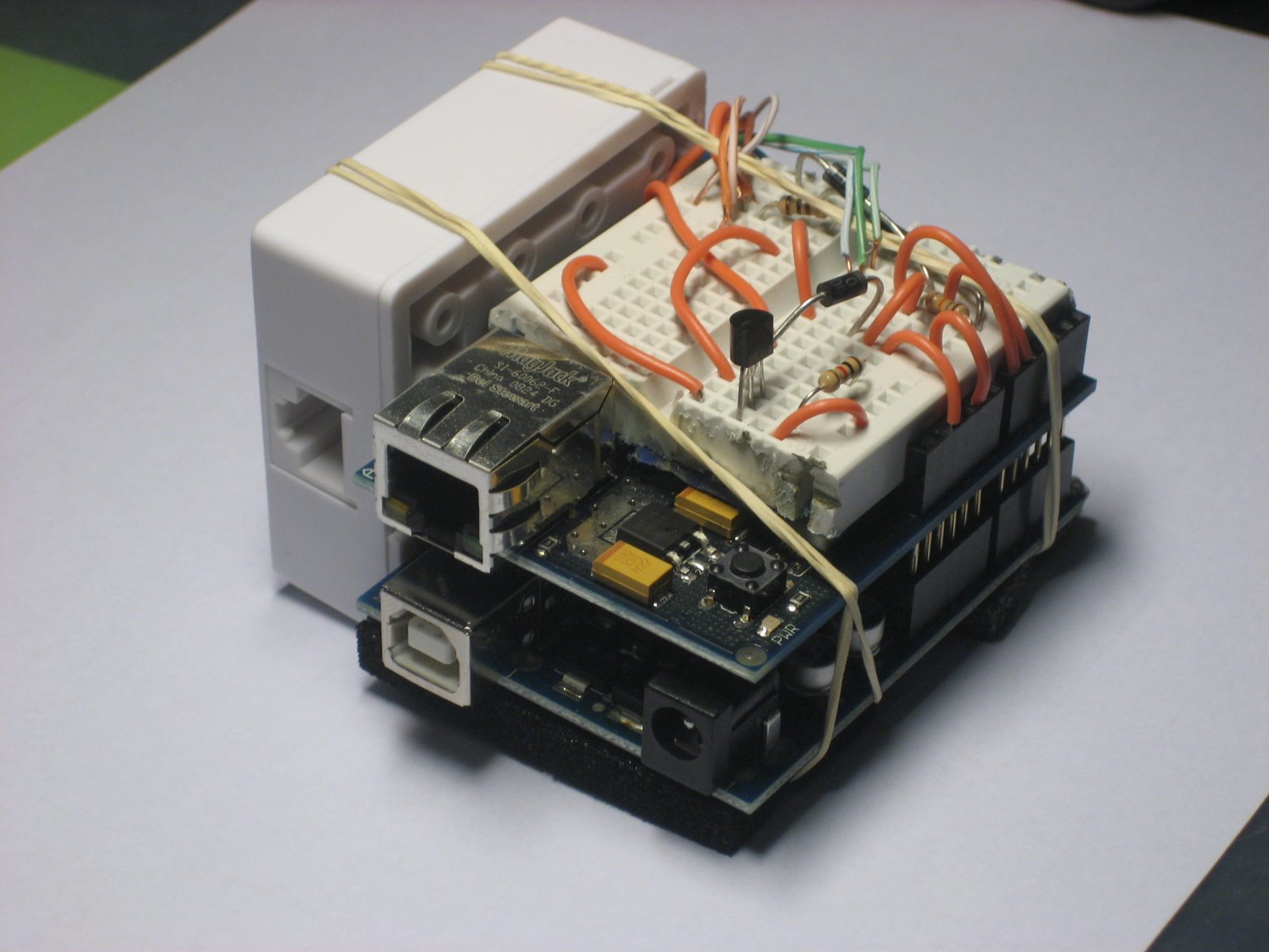 Thermosmart to termostat zbudowany na arduino, który dodatkowo wyposażono w interfejs sieciowy umożliwiający monitorowanie temperatury i zmianę ustawień z dowolnego miejsca. Można włączyć/wyłączyć chłodzenie, ustawić tryb automatyczny i granice, w jakich temperatura ma być utrzymywana. Układ składa się z modułu arduino-duemilanove, modułu ethernet, czujnika temperatury i kilku elementów dyskretnych. Urządzenie to może być użyteczne do uprawy roślin o wąskiej tolerancji temperatury otoczenia.