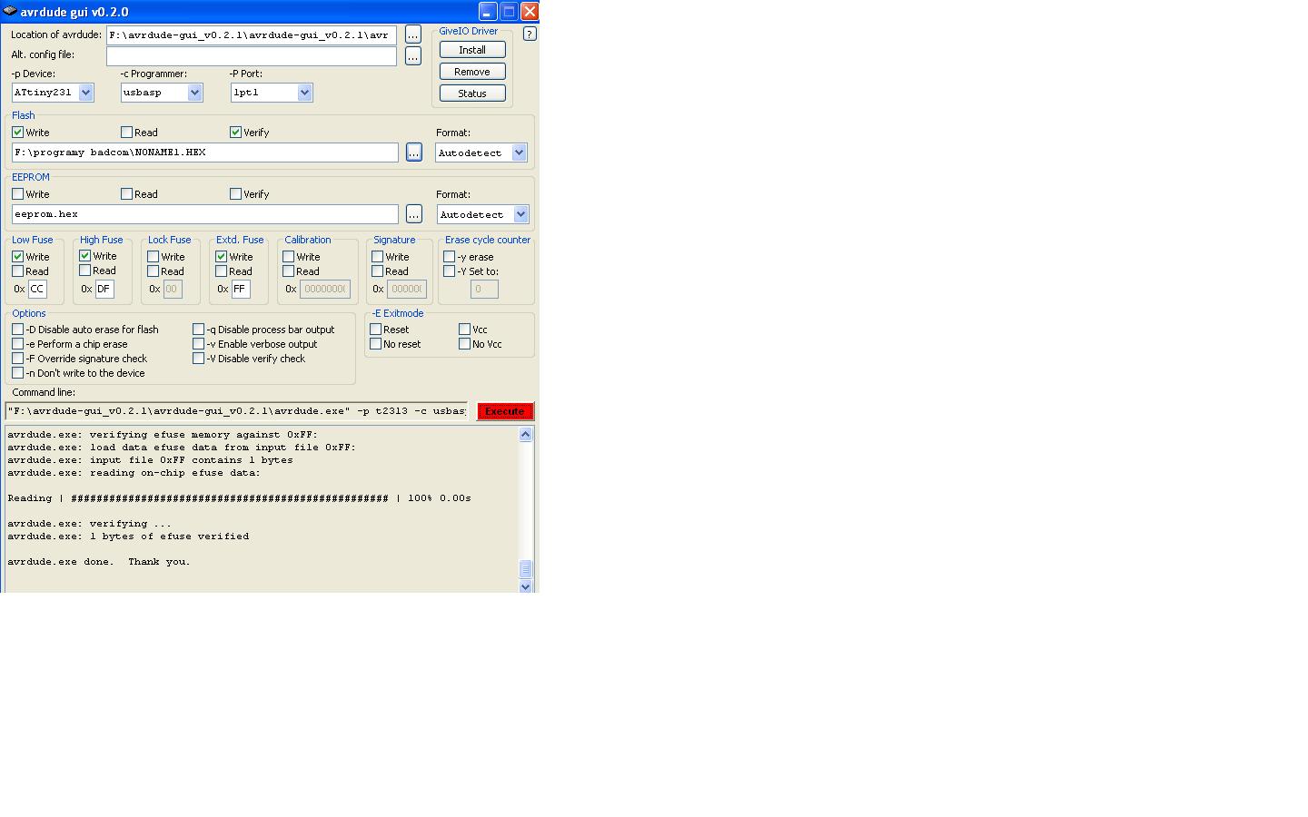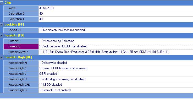 Witam. Czy możecie mi powiedzieć jak ustawić fusebity w avrdude gui tak, aby dobrze działał attiny 2313? Bo już próbowałem niemal wszystkiego. W bascomie to było proste ale odkąd przesiadłem się na programator USB to mnie coś trafia...Z góry dzięki za odpowiedź