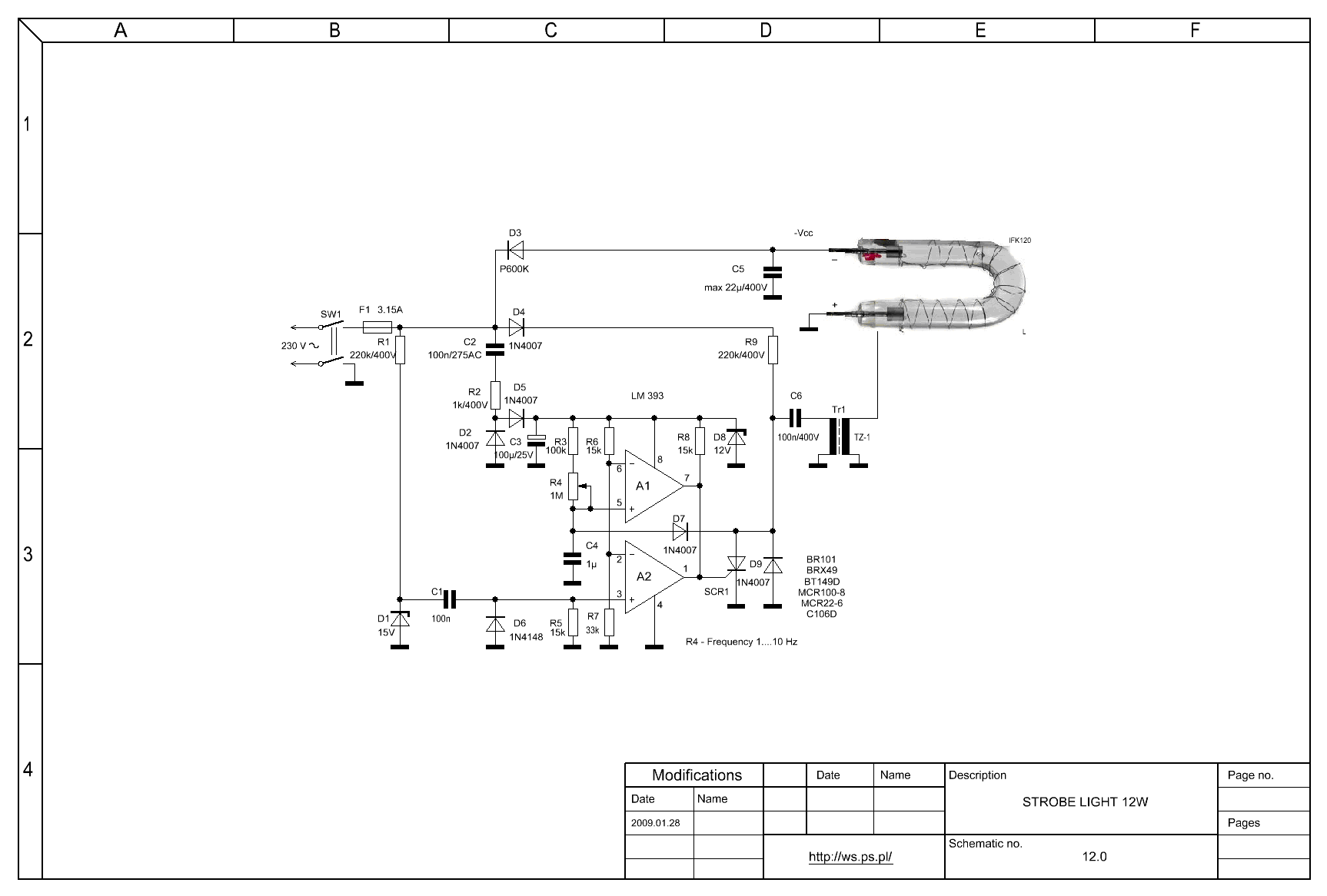 Teraz praktyczny schemat stroboskopu zaprojektowanego przeze mnie i sprawdzonego w działaniu.