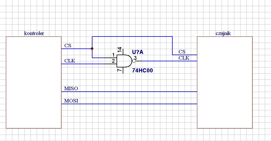 Nieco inaczej zadam opisze problem...czujnik z Chip Selectem podniesionym, na wspolnych liniach MISO, MOSI oraz CLK powinien milczeć prawda? Natomiast nie wiedzieć dlaczego mój układ próbuje żyć i zakłóca. Choć porównując odpowiedz czujnika żywego, odpowiedz "cichego" i wynik złożenia tych sygnałów - zupełnie jest on dla mnie nie zrozumiały (na linii powstała jakaś nie znana operacja logiczna, ani AND, ani OR ani inne z mi znanych).