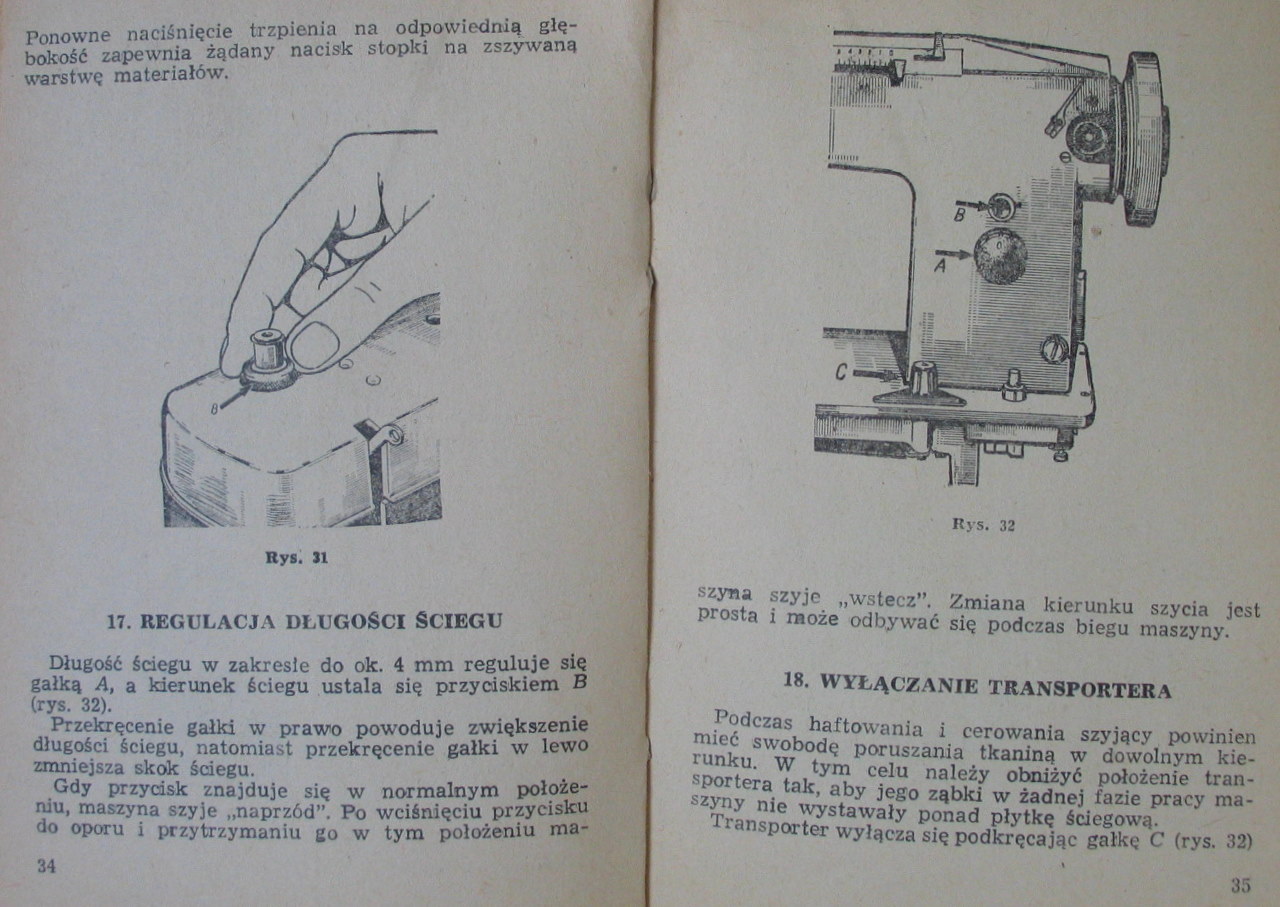 Jeśli chodzi o ten przycisk to zgodnie z instrukcją obsługi poniżej zdjęcie zmienia on kierunek szycia (moja mama mówi że używa go do mocowania przy zakończeniu ściegu).