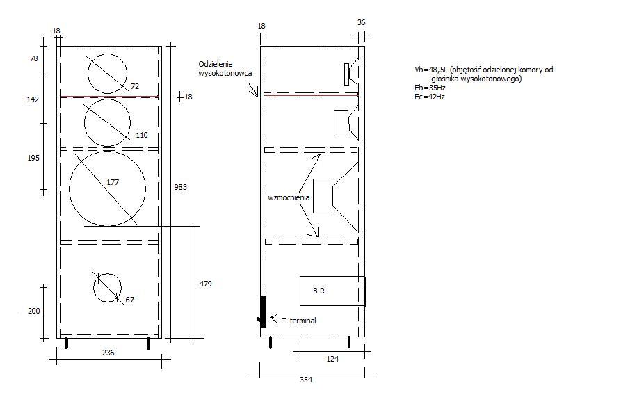 a dla sredniotonowca obliczylem odciecie dolne 900 Hz a gorne 4800Hz tak samo jak dla wysokotonowca.