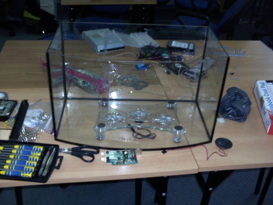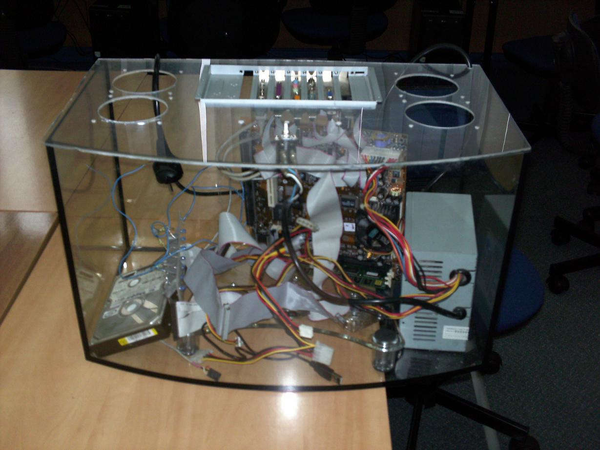 Na kółku z informatyki wpadliśmy na pomysł aby zrobić komputer w akwarium. Jest to projekt wykonywany w celach dydaktycznych, dla tych co nigdy nie widzieli komputera od środka. Oczywiście będzie modding wizualny ale to potem. Na razie etap 1 czyli:
