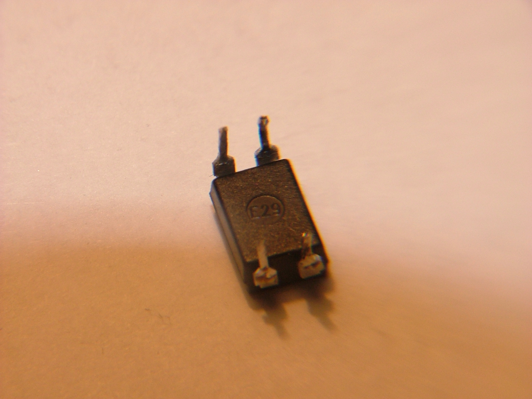 Zamieszczam foto elementu ,który wygląda jak transoptor i napisy jego oraz scalaków są specjalnie zeszlifowane. Element ten pochodzi z płytki jonizatora folii.Między dwoma końcówkami pomiar wykazuje jako dioda nadawcza a po drugiej stronie jest opór 30 omów (niby fototranzystor).Cały układ wyłącza się gdy podgrzeje owy element.Gdy podstawię inny (bo są 2 szt i też z oporem 30 omów) to wszystko ok.Myślałem,że zamiast fototranzystora jest tam jakiś transoptor Darlington.Wstawiłem na sprawdzenie TLP721 i nie działa.Czy ktoś wie?