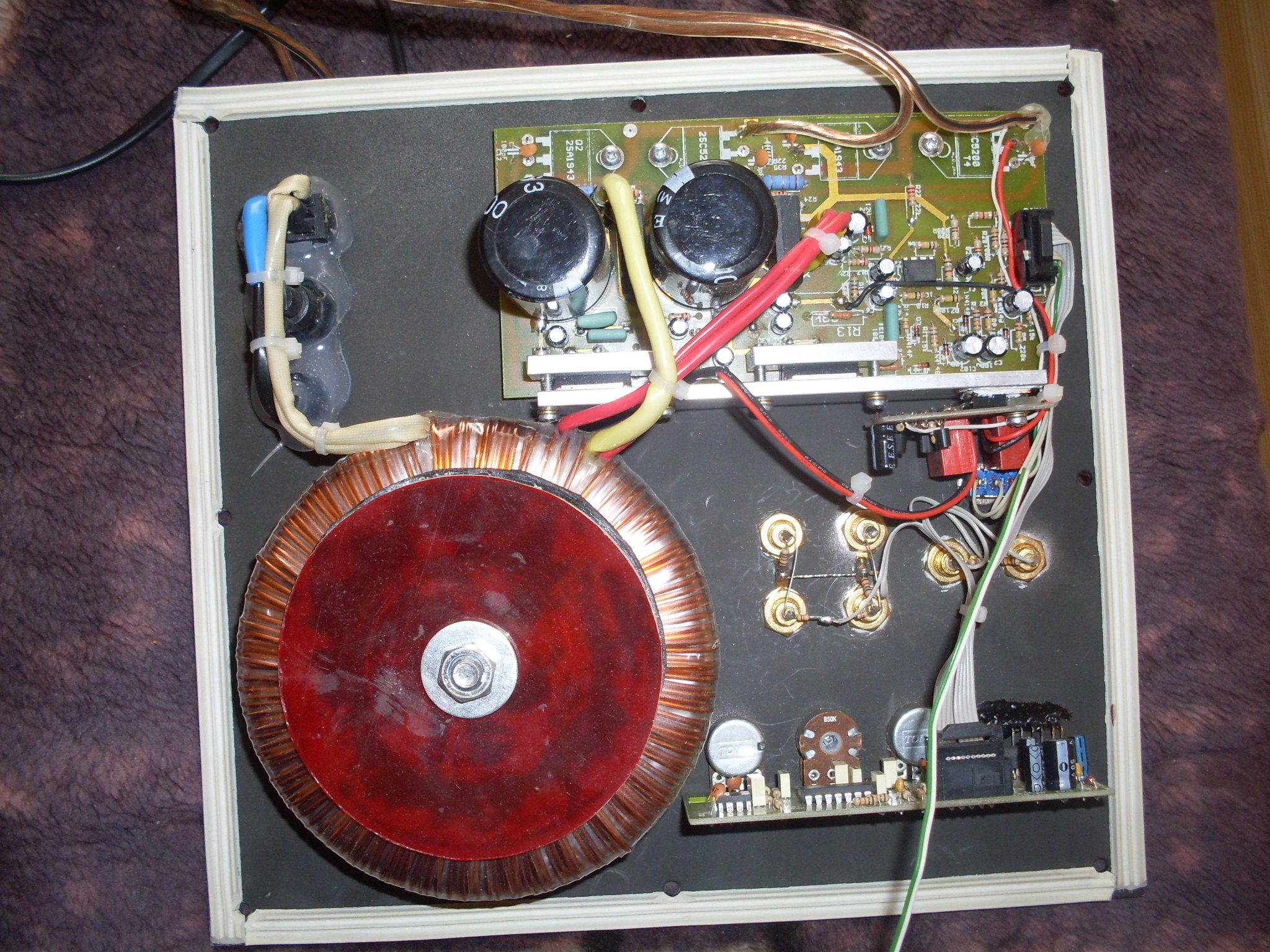Końcówka mocy zabudowana jest od wewnątrz na grubym kątowniku Al., co daje równomierne odprowadzenie ciepła i stabilność termiczną wzmacniacza.