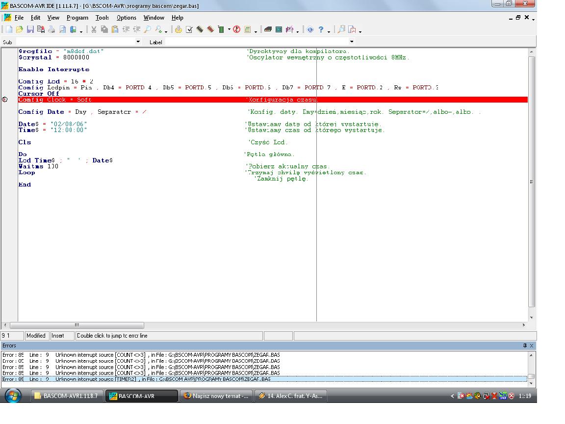 A więc mam problem z bascomem a zaczyna się tak że bascom nie kompiluje mi większości np.config clock