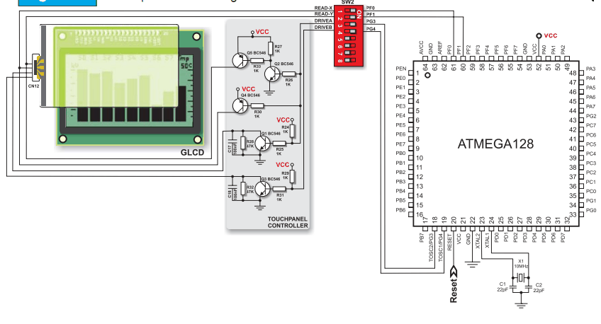 Nadszedł czas na poznanie paneli dotykowych. Kupiłem panel rezystancyjny 4 końcówki i napisałem program do obsługi małego wyświetlacza 128/64 pikseli.