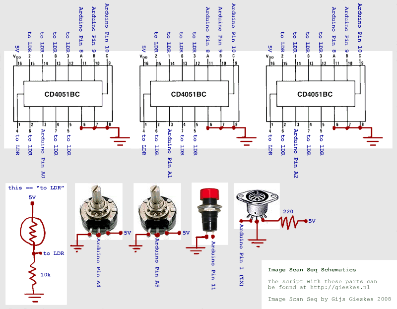Elementy użyte do budowy: 24 fotorezystory podłączone do przetwornika ADC arduino przez 3 układy 4051 (8-channel analog multiplexer/demultiplexer).
