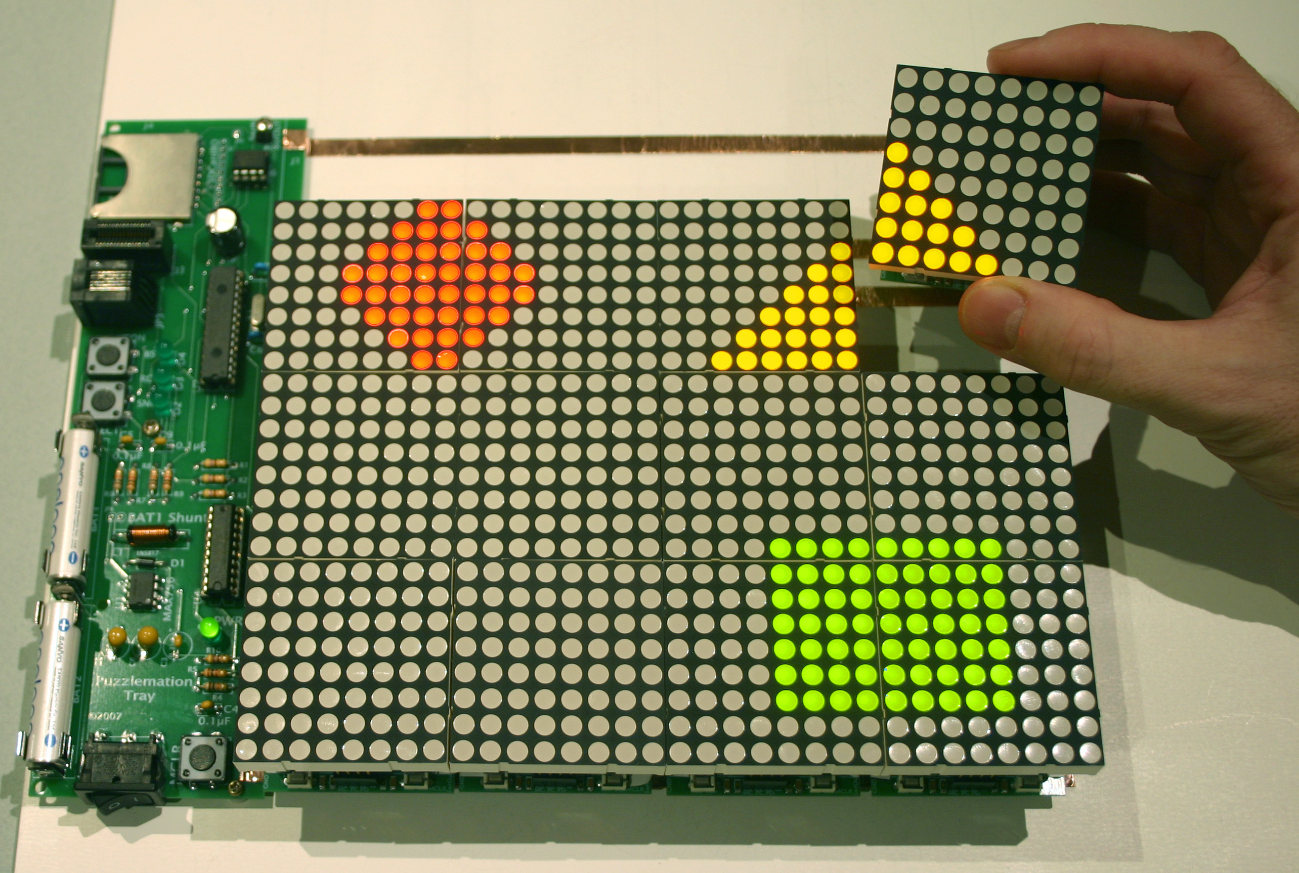 Puzzlemation to urządzenie które łączy w sobie puzzle z kolorowymi wyświetlaczami LED. Interesujące jest to, że układ poszczególnych segmentów można zmieniać za pomocą, wgrywanych do pamięci sterujących układów, sekwencji.