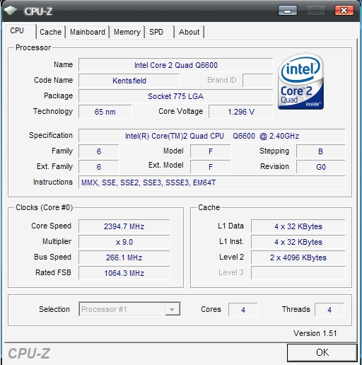 Procesor: QuadCore Intel Core 2 Quad Q6600, 2400 MHz (9 x 267) Seria G0