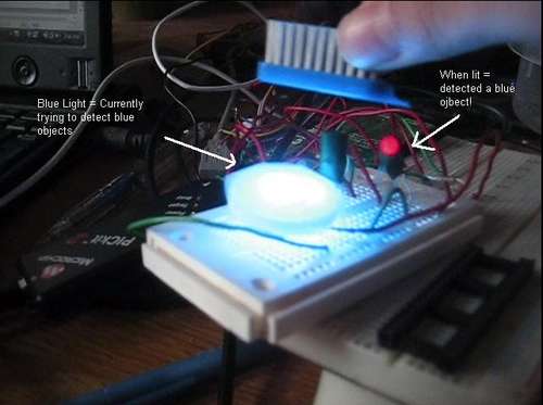Zazwyczaj do rozpoznawania kolorów używa się skomplikowanego czujnika. Artykuł opisuje dużo prostszy sposób, który wykorzystuje diodę LED RGB oraz fotorezystor. Działanie urządzenia opiera się na prostej obserwacji, że ilość światła odbitego od obiektu jest maksymalna, gdy jego barwa pokrywa się z kolorem padającego światła. Wynika stąd, że przy pomocy wymienionych wcześniej elementów można rozpoznawać całe spektrum barw. W tym projekcie wykorzystano mikrokontroler PIC16F887, by urządzenie mogło rozpoznawać wszystkie kolory, lecz gdy potrzebujemy prostego czujnika wrażliwego na jedną konkretną barwę wystarczy pozbawiony "inteligencji" układ ze stałymi wartościami prądów zasilających diodę RGB. Możliwych zastosowań tego pomysłu jest wiele, jak na przykład automatyczne sortowanie.