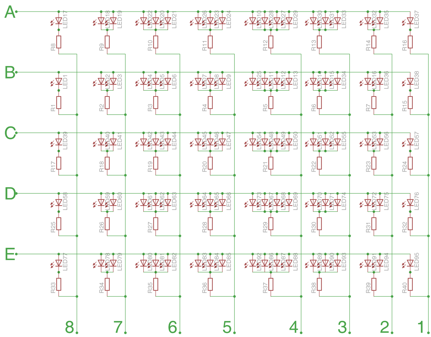 Sam projekt ma 8 kanałów (oznaczone 1do8) dookoła robiąc okręgi i 5 kanałów (oznaczone A do E) jako 5 ramion gwiazdy - Czyli powstała matryca 40 kanałowa