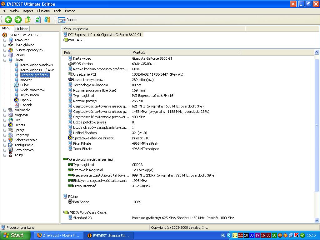 Gigabyte 8600GT 256MB, DDR3 0dodany wentylator, bo mam pasywne chłodzenie