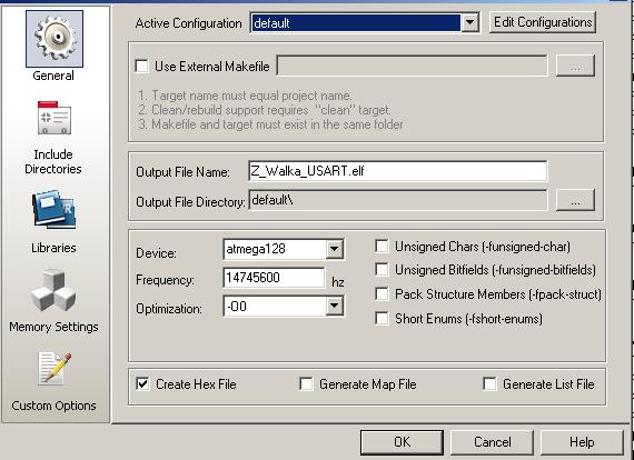 Mój problem polega na tym, że nie mogę ustawić połączenia uC <-> PC z Atmegą 128. Przy AT16 wszystko jest w porządku, a ze 128 wyświetla mi nieprawidłowe znaki w Terminalu. Przy transmisji dioda się świeci i i wszystko poza tym działa jak powinno.