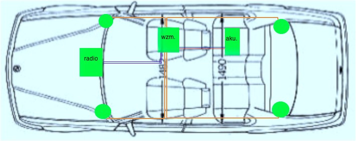 Przygotowuję się do montażu nagłośnienia w swoim BMW E32 i zastanawiam się nad kwestią okablowania. Akumulator w tych autach znajduje się pod tylnym siedzeniem. Do założenia jest deck Alpine 7915M i wzmacniacz czterokanałowy Alpine 3550. Wpadłem na pomysł, żeby umieścić wzmacniacz pod siedzeniem pasażera. Oryginalnie była tam apteczka więc miejsca powinno być wystarczająco dużo. Ogólnie wykombinowałem to sobie w ten sposób :