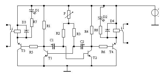 Potrzebuje schemat układu/sterownika do włączania 2 przekaźników 24V/50A. Układ zasilany będzie z 24V (akumulator) i musi mieć możliwość regulacji szybkości przełączania. To znaczy jeżeli jeden będzie włączony to drugi musi być wyłączony i tak w kolko.