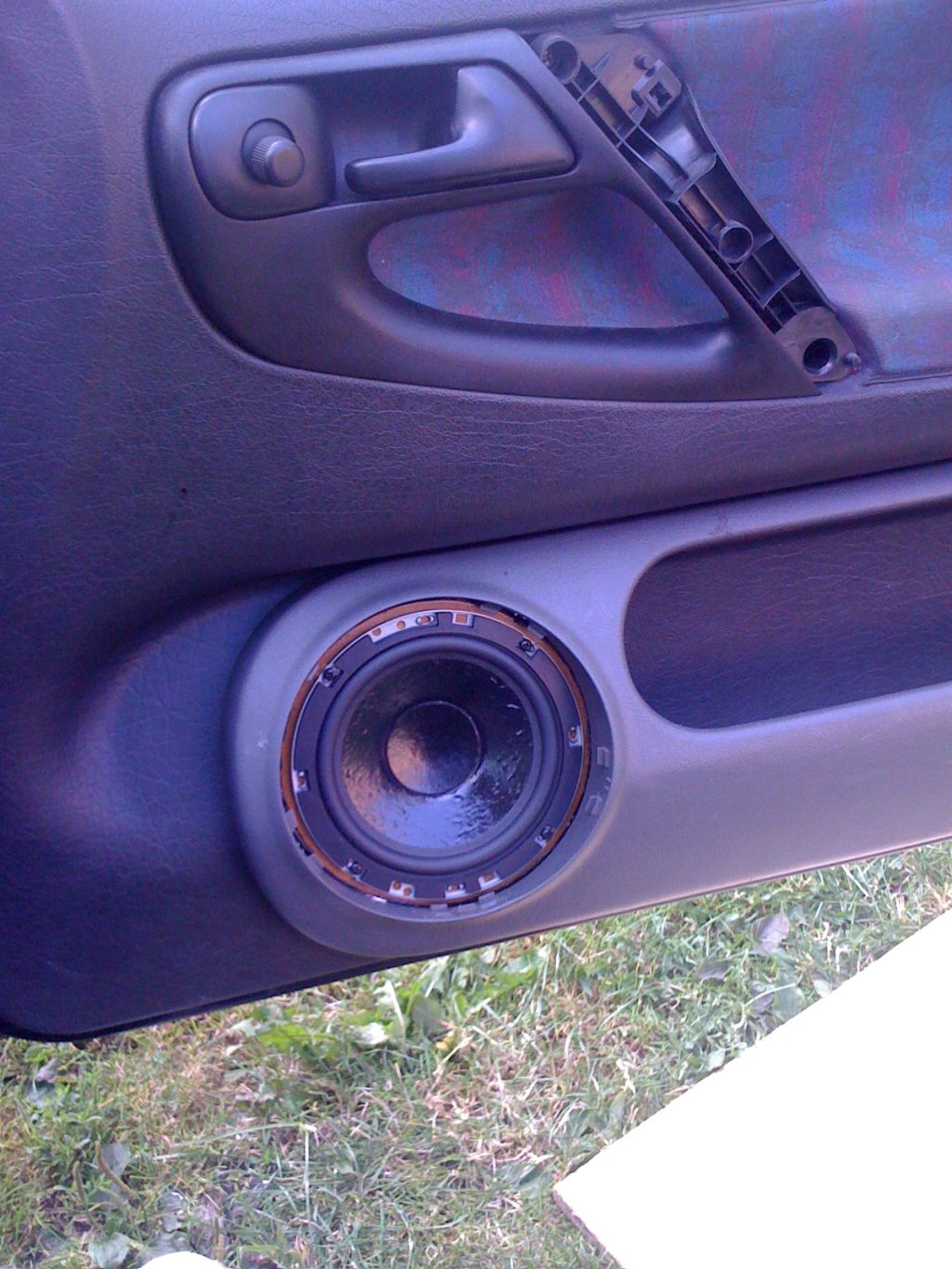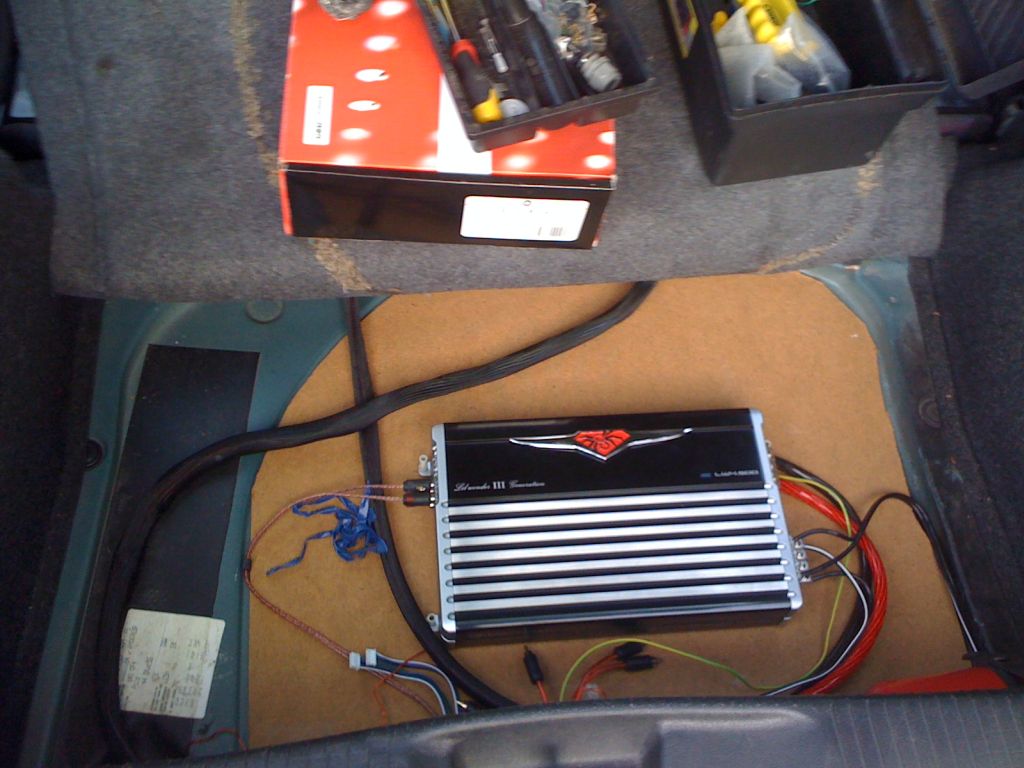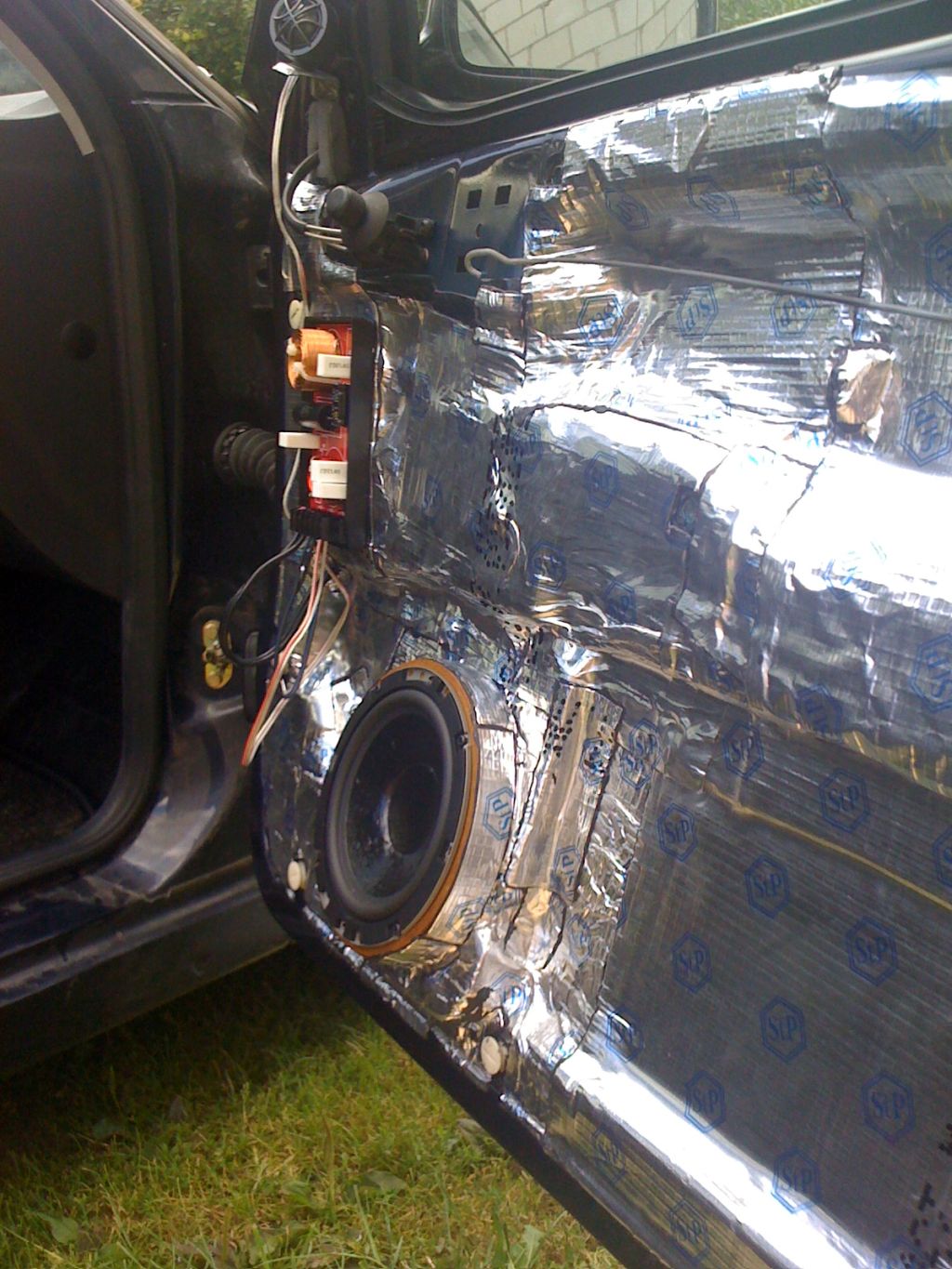 Auto VW Polo, drzwi wytłumione, wzmacniacz SOUNDSTREAM LIL WONDER LW4.500, radio Alpine IDA-X300.