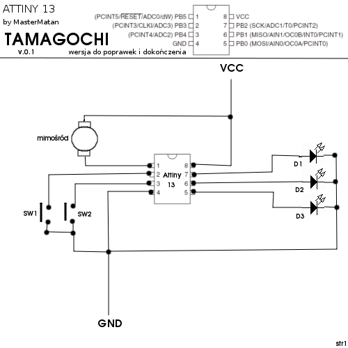 Witam, jest to mój pierwszy temat na tym forum i chciałbym was forumowiczów prosić o pomoc. Mam 13 lat i zainteresowały mnie mikrokontrolery i postanowiłem że zakupię jeden a potem pomyślę co z tego można by było zrobić. Postawiłem na Attiny13 bo była tania. W sklepie poradzono mi bym zrobił sobie płytkę testową ale niestety nie znalazłem takiej dla Attiny13. Poszukawszy trochę w internecie znalazłem ten projekt: