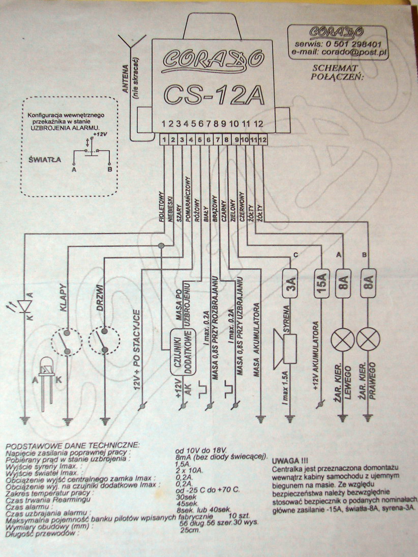 Witam wszystkich. potrzebuję schematu alarmu Corado CS-12. Znalazłem na forum schemat do CS-18 ale do mojego modelu nie. Nigdzie tego nie mogę znaleźć. Szukałem także przez google ale nic z tego. Byłbym bardzo wdzięczny. Szczególnie chodzi mi o wyprowadzenie (który pin do czego służy itp).