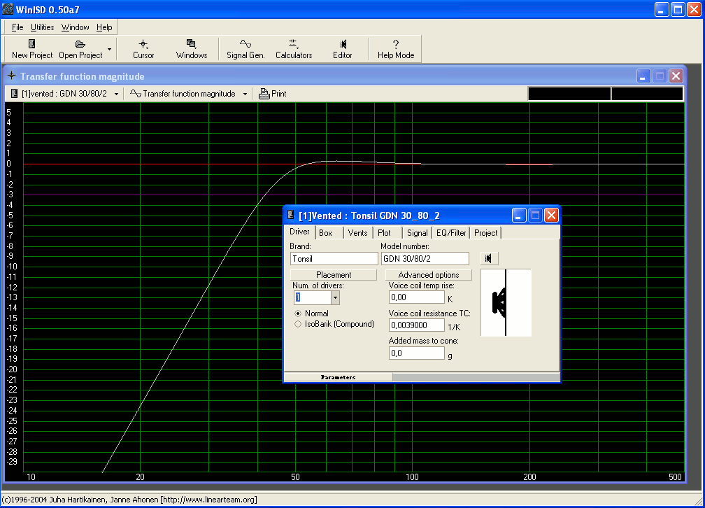 chcę zrobić subwoofer na głośniku GDN 30/80/2 lecz nie mam jego wszystkich danych mianowicie Re, Le, Xmax, dia, BL gdyż nie mam pojęcia co one wogle oznaczają szukałem po forum lecz kompletnych wszystkich danych nie znalazłem ( potrzebuje je do programu WinISD), a może ma ktoś projekt skrzynki na ten głośnik ?