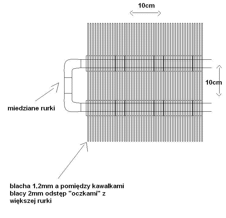Szczerze watpie by udalo ci sie ja ladnie poskladac. Poza tym nie blacha a aluminium, i polaczenie zeberek z rurka jest tu dosc krytyczne jesli chodzi o wydajnosc.