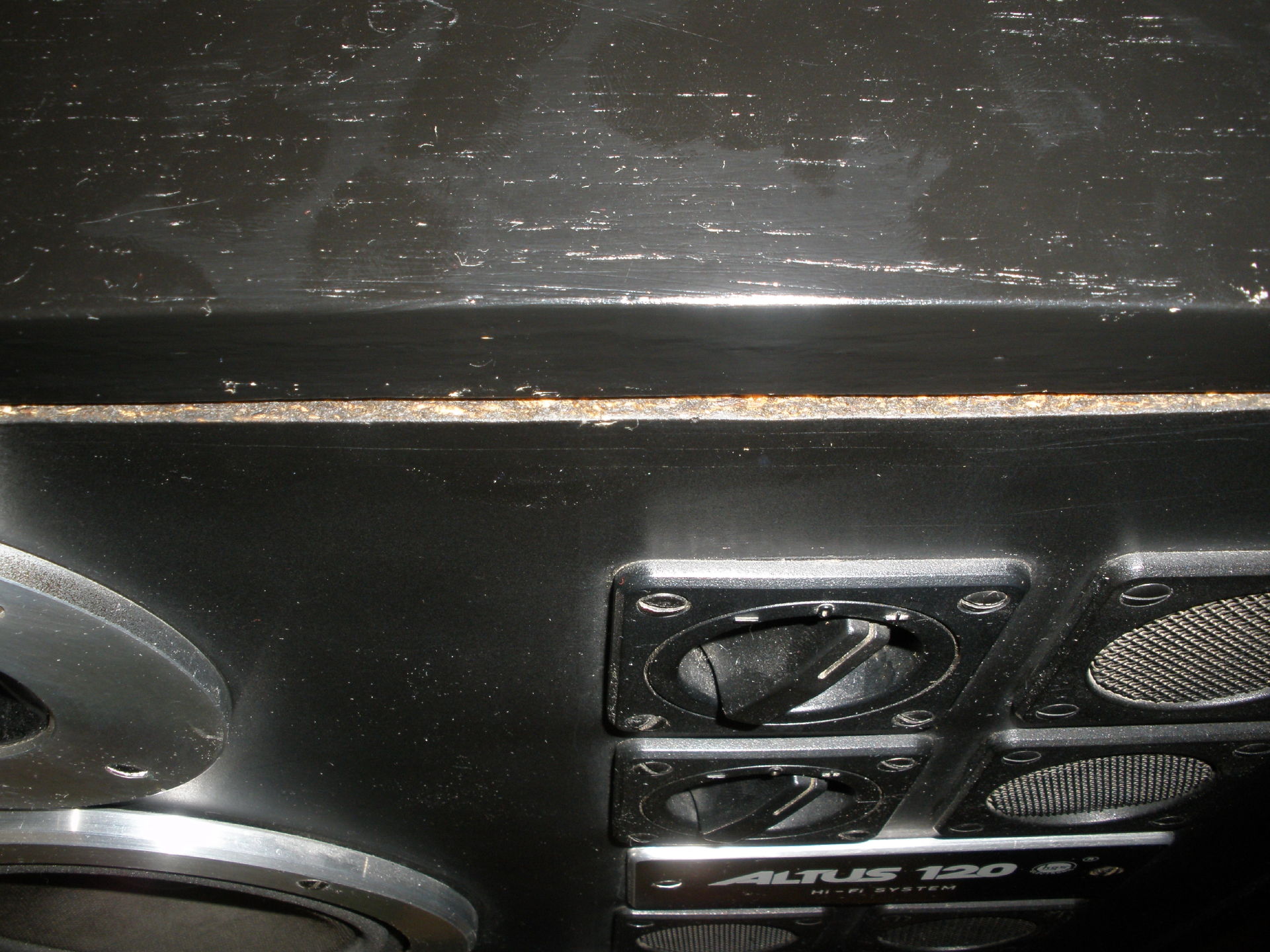 Mokry ręczniczek papierowy leżał na kolumnie, a jego koniec wdarł się pomiędzy obudowę a panel przedni kolumny. Przeleżało to tak kilka dni i wypuczyło płytę z górnej części. Rok produkcji płyty to 1982r.
