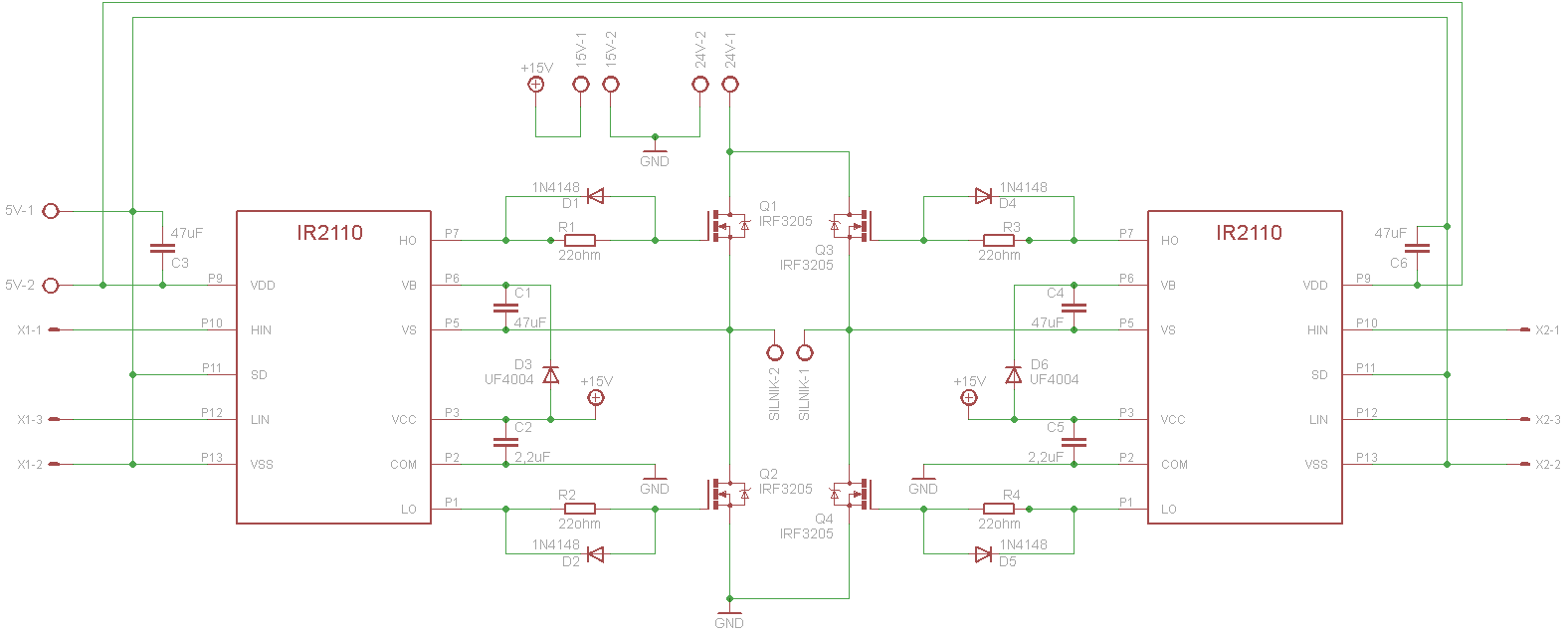 PWM do obu wejść LIN sterowników, wyjścia normalne osobno do dwóch wejść HIN sterownika.