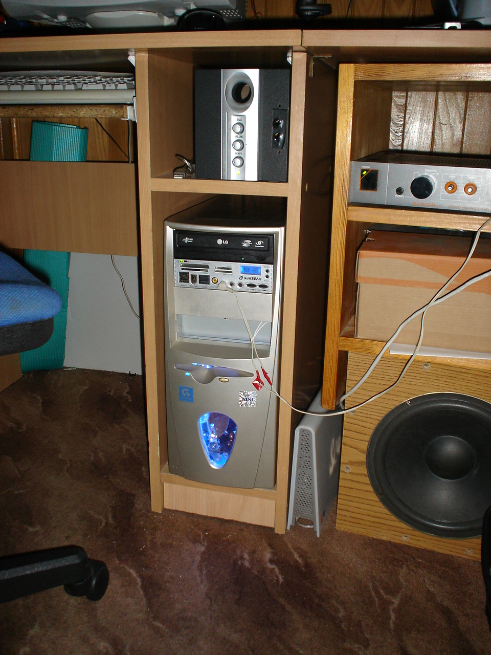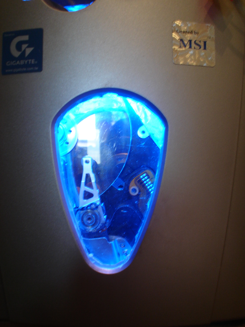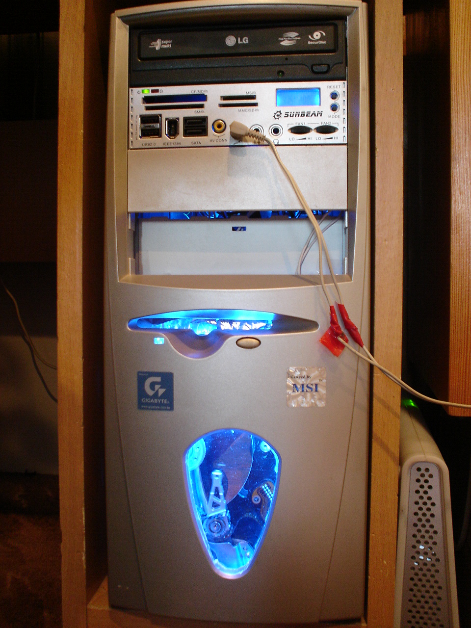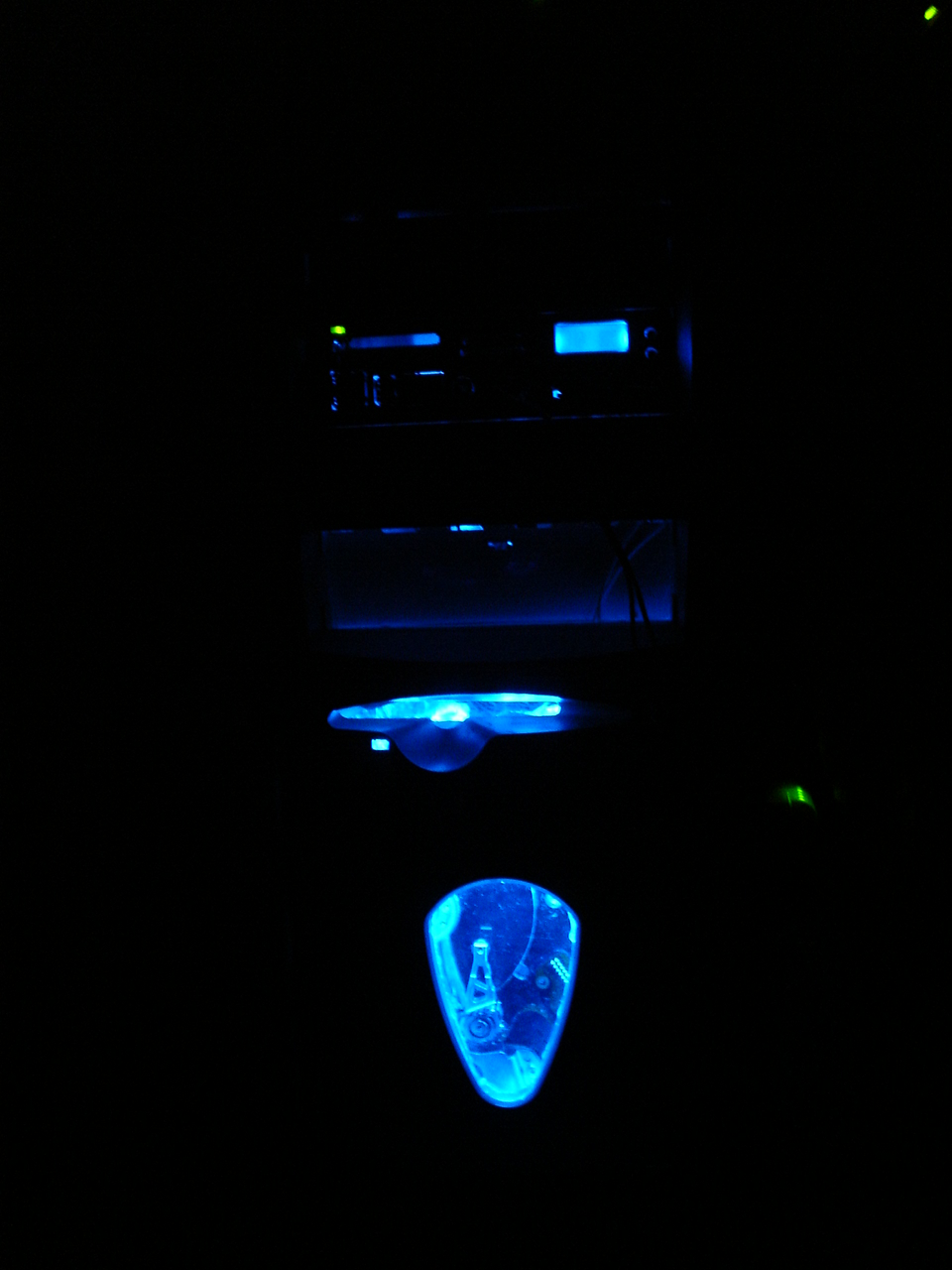 Całość podświetla niebieska katoda - dlaczego niebieska do złotej budy ? Ano dlatego, że kupiłem ją na allegro, od MadTech, kiedy mieli wystawione kilka tysięcy różnych ściecidełek, paneli itd, okazało się że niebieskie było najtańsze