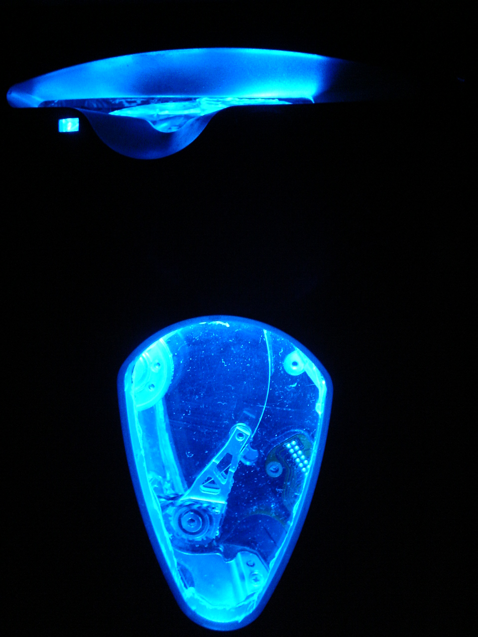 Mój wskaźnik opiera się na starym dysku twardym. Wykorzystałem głowicę, która porusza się w lewo i w prawo, nad talerzem HDD, tym samym wskazując użycie - im bardziej w prawo, tym większe.