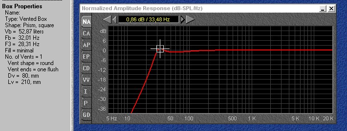 Wszystko wyliczone w programie Bas Box. Pojemność jednej komory to ~60l.