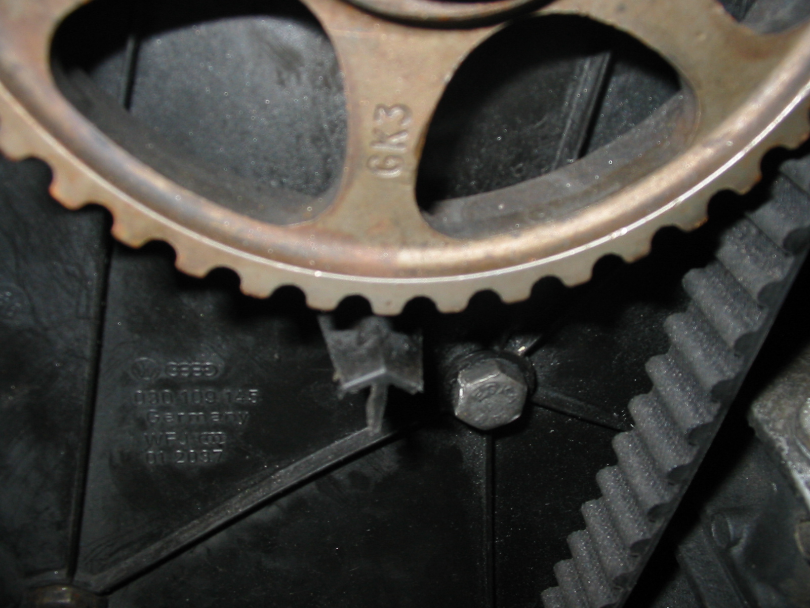 Zanim zdejmę głowicę, chciałbym założyć nowy pasek i zobaczyć jak wygląda sprężanie. I tu pojawić sie problem bo nie mogę znaleźć żadnych jednoznacznych znaków do ustawienia rozrządu.