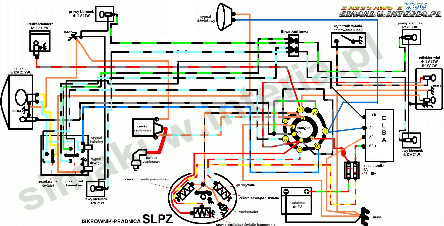 Witam, ostatnio kopiłem Simson s 51 82r tylko z elektryka jest coś nie tak, paliło się cały czas światło stopu a gdy nacisnąłem hamulec to gasło. Kable od migaczy poopalane zrobiłem nową instalację, wywaliłem tyrystor i przerywacz i kupiłem elbe 12 V tylko ze cewki w iskrowniku wszystkie mam chyba na 6 V. Moje pytanie to czy przy aku 12 V żarówkach w migaczach i elbie 12 V będzie to działać? Na razie nic nie działa, nie ma świateł. Proszę o pomoc. Korzystałem ze schematu.