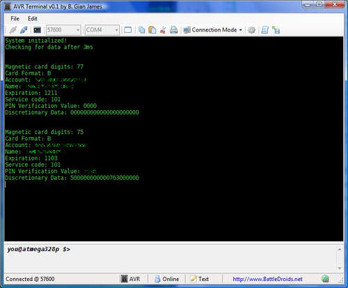 Autor tego artykułu stał się posiadaczem modułu czytnika kart magnetycznych, więc postanowił podzielić się z innymi wiedzą jak się z nim komunikować. W swoim urządzeniu zastosował mikrokontroler z popularnej rodziny AVR. Artykuł omawia wszystko od podstaw, zaczynając od zasady działania samego czytnika a kończąc na wykrywaniu różnych stanów karty. Autor opublikował kod źródłowy programu by każdy mógł sam spróbować go uruchomić, lecz niestety działa on tylko z identycznym jak w opisie typem czytnika, a w innym przypadku wymaga modyfikacji, jednak nawet wtedy artykuł zawiera wiele użytecznych informacji.