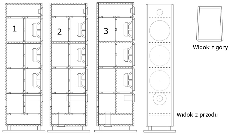 Głośniki, jakie będą użyte są w fazie planów, co do głośnika wysokotonowego to jeszcze nie wiem, pod nim głośnik z korektorem fazy jako średniotonowy, pozostałe będą jakieś podobne, ale już zwykłe jako średnio i niskotonowy.