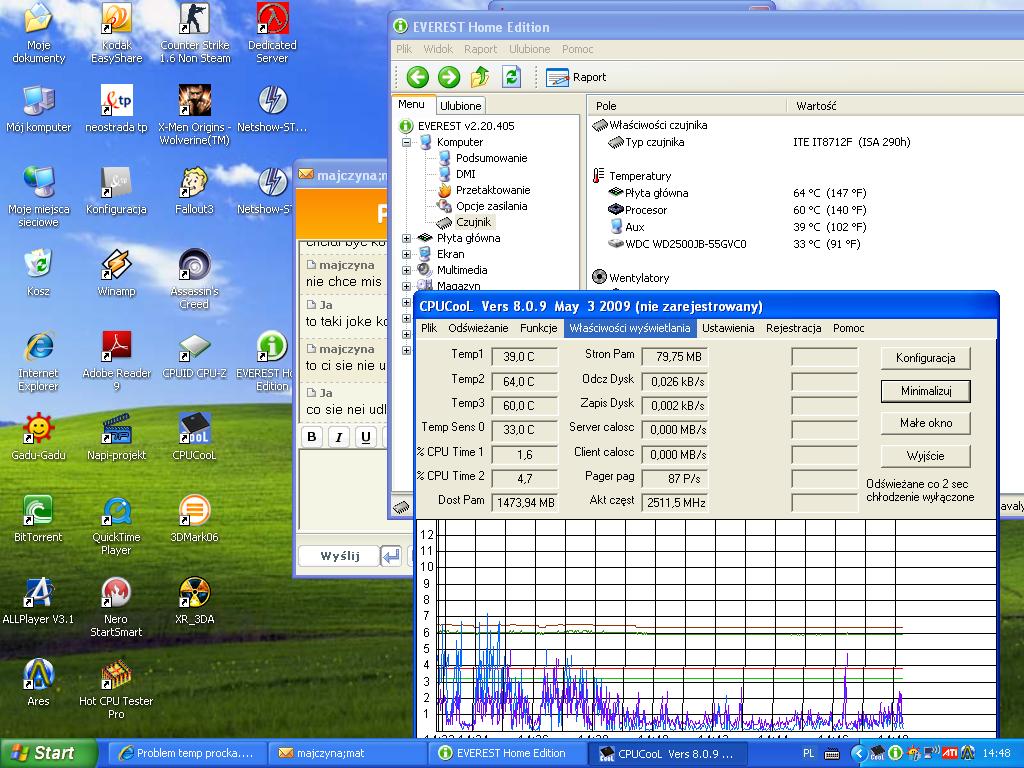 Teraz temp procka w spocznku czy przy malym obciazeniu wyznosi 58-64 stopnie a temp plyty glownej jest o 4 stopnie wieksza.