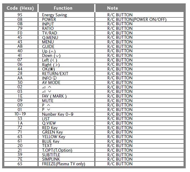 Chciałbym zbudować pilot do TV LG, w instrukcji użytkownika mam takie dwie strony poświęcone kodom IR: