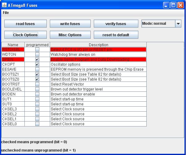 mam problem i juz nie wiem co źle robie a mianowicie chce zaprogramowac Atmega8 programator jest podpiety dobrze bo przy pierwszej próbie widzi procka i odczytuje fusebit ustawiam je na 8MHz wgrywają sie bez problemu do procka po czym procek umiera brak komunikacji ;/ probowalem z dwoma nowymi prockami i na obu to samo pod spodem screen ustawien bitow czy moze mi ktos pomoc ??