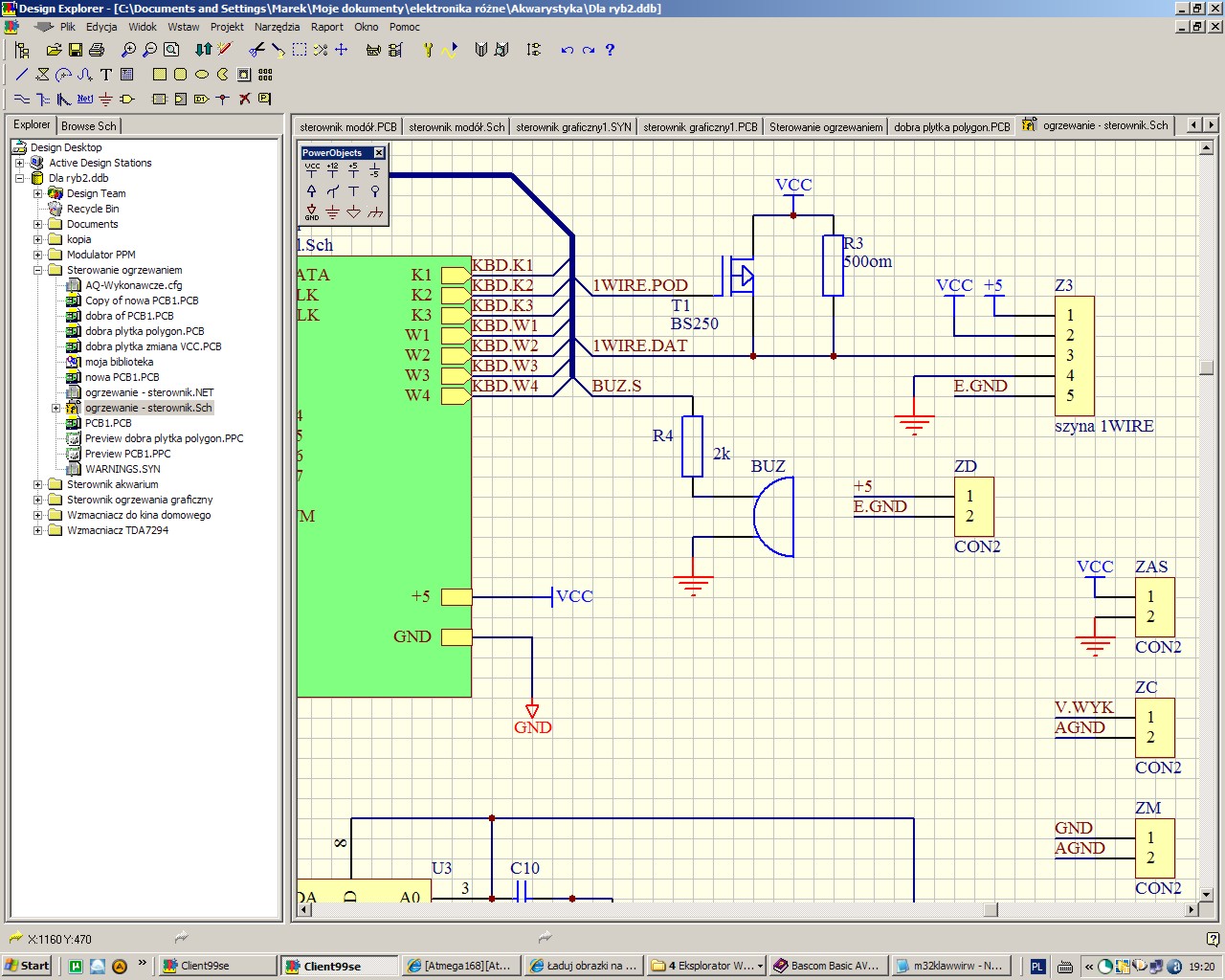 Temat jest taki. Posiadam magistralę 1wire na której są zamontowane termometry DS18B20 oraz przełączniki DS2407. Pracuje na tym sterowanie ogrzewaniem w mieszkaniu. Do tej pory sterowałem nią układem na bazie Atmega168 i działało to prawidłowo. Zbudowałem następny sterownik z Atmega32 na pokładzie i zaczeły się schody. Odczyt adresów układów prawidłowa. Komunikacja z DS18B20 prawidłowa wraz z odczytem temperarury. Problem mam z DS2407. Myslałem że mam problem z magistralą wogóle, ale jeden z DS2407 działał prawidłowo tzn wysyłając adres przełączał się on/off. Magistrala była wyłączona od wiosny więc myślałem , że coś się stało, jednak działający przełącznik przepinałem w różne miejsca i działał w dalszym ciągu prawidłowo. Podłączyłem w końcu stary sterownik i wszystko działa. Pytanie jest takie co może powodować taką sytuację. Czy jest to sprawa użycia niewłaściwego portu który może byś mało wydajny prądowo..?. Druga sprawa jest taka w działającym sterowniku mam podpiętą magistralę do jednego pinu z portu C a wdrugim do portu A. Już przepinałem w Atmedze32 magistralę pod port C jednak to nic nie zmieniło. są w sumie dwie różnice w ustawieniu fusebits w działającym mam włączony JTAG a w drugim nie. Atmega168 taktowana kwarcem 8Mhz a AT32 16Mhz. Czy zmieniłoby coś jakbym w Atmedze 32 podłączył 1wire pod port C i włączył JTAG..?. To tyle na początek. Acha czy aż taki wpływ może mić odległość podłączenia magistrali od uP ?