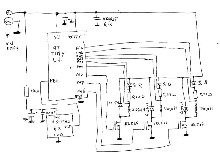 Autor tego artykułu wykonał naprawdę solidną pracę dokładnego udokumentowania procesu wykonywania takiego urządzenia krok po kroku(ze zdjęciami, schematami i linkami do zastosowanych części). W wielkim skrócie: budowę takiej lampki trzeba rozpocząć od zakupienia i otwarcia żarówki CFL IKEA, by uzyskać obudowę. W takim opakowaniu instaluje się źródło zasilania, mikrokontroler ATtiny44, moduł LED RGB i odbiornik radiowy. Dzięki temu urządzeniu i bezprzewodowemu pilotowi można dowolnie zmieniać oświetlenie pokoju. Co prawda wykonanie tego układu kosztuje dość sporo, lecz jeśli wziąć pod uwagę jego żywotność to cena nie wydaje się już być tak wygórowana.