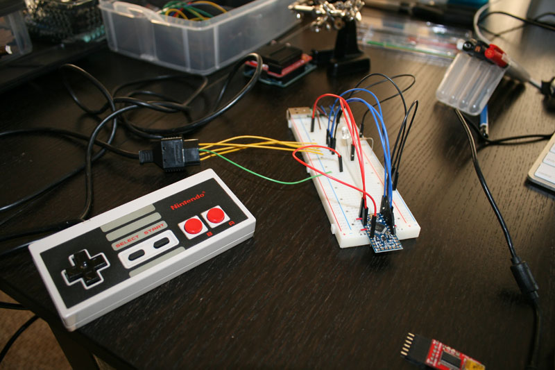 Joven pokazał swoja modyfikację kontrolera do NESa. Początkowo miał zamiar po prostu dodać pamięć flashową. Jednak później wpadł na inny pomysł, aby dostęp do pamięci był aktywowany odpowiednim kodem wpisywanym za pomocą klawiszy kontrolera. Kombinacją odbezpieczającą pamięć jest kod Konami, czyli kombinacja klawiszy, która w wielu grach tej firmy była kodem dostępowym do cheatów. W wikipedii można znaleźć kilka słów na temat tego kodu. Poniżej zamieszczam kilka zdjęć projektu i film ze strony źródłowej autora.