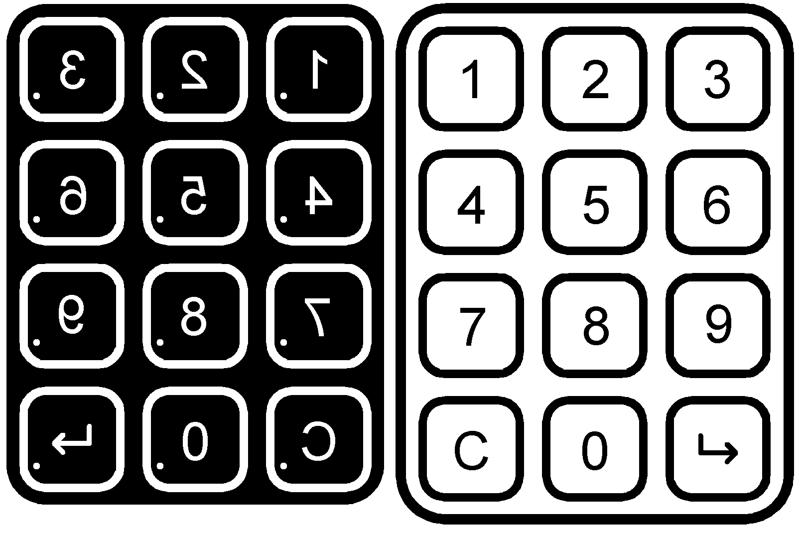 (po lewej nadruk na płytkę, białe plamki obok cyfr to otwory przez które połącze pola przycisków z płytką bazowa)