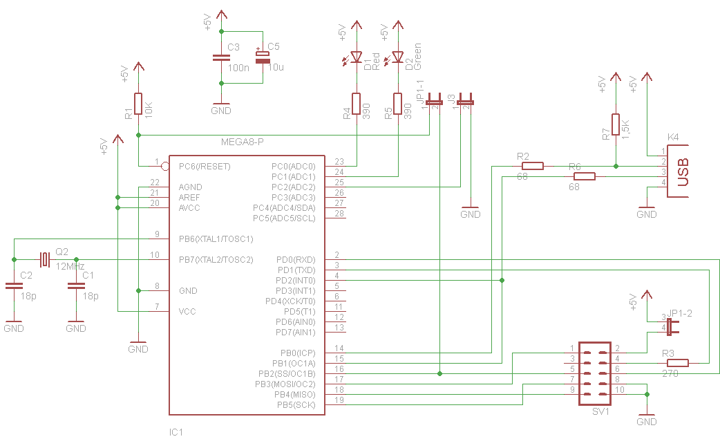 Wykonałem płytkę pod USBasp wedle schematu: