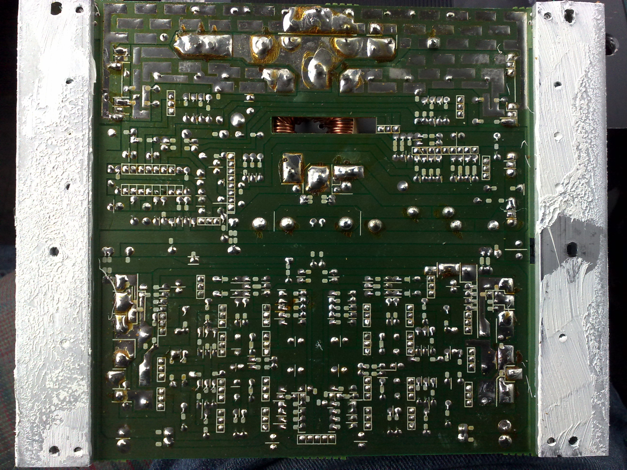 ) , naszukałem się, znalazłem tylko ogólne informacje na temat mostkowania wzmacniaczy samochodowych (że tych na układach scalonych TDA, bez przetwornic, o małej mocy +- 5A , itp. nie da sie mostkować) i nigdzie nie mogę znaleźć czegos konkretnego, bo to zależy od modelu itp., a tego mojego nigdzie nie znalazłem... nie jestem specem od elektroniki ani CA,(ciut podstaw liznąłem) ale ten wzmak jest dwukanałowy posiada dwa bezpieczniki pa 15A czyli pomijając straty powinien mieć z 2x 50W, może 60W, a praktycznie na każdym wzmaku tego typu (podobne w budowie i mocy) jest napsane na obudowie, że można je mostkować, a na moim nie ma... i nie wiem czy to wszystko jedno czy zepne R+L- , czy L+R-, bo jeśli tak, to poco producenci wsakzują scieżki, z których może powstać mostek. Także mam kilka pytań: czy da sie go zmostkować? i jak coś, to które ścieżki? czy coś sie może stać, jeśli zmostkuję nie te ścieżki co trzeba? a i co tak w ogóle sądzicie o tym wzmacniaczu?