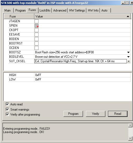 dawid512 napisał: IMHO kolega ma klasyczny problem "źle ustawione fuse bity" przez co z uc nie pogadasz do póki nie przypomnisz sobie jak je ustawiłeś i nie podasz odpowiedniego sygnału taktującego uc. Jeżeli jesteś nie w temacie to sądzę że prościej dla ciebie będzie kupić nowy uc.