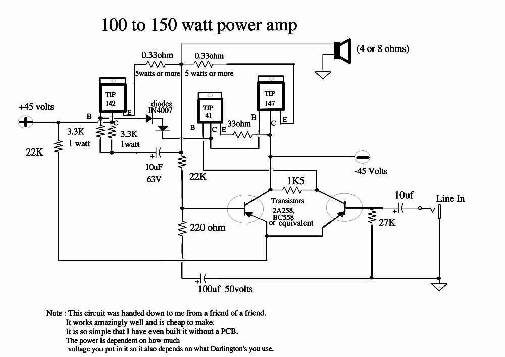 Układ ten pracuje zaskakująco dobrze i jest tani do zrobienia. Można go zbudować nawet bez płytki drukowanej. Zasilanie zależy od przyłożonego napięcia oraz od rodzaju zastosowanego wzmacniacza (tranzystorowego) Darlingtona.