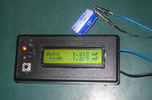 Często zachodzi potrzeba poznania dokładnej pojemności kondensatora, która może się znacząco różnić od wartości znamionowej. Opisywane urządzenie to miernik pojemności o dokładności 1pF w zakresie od 1pF do 10mF, skonstruowany z wykorzystaniem mikrokontrolera ATmega8. Przed pierwszym pomiarem należy skalibrować miernik, ale na szczęście robi się to tyko raz, ponieważ konfiguracja jest zapisywana w pamięci EEPROM mikrokontrolera. Program sterujący pracą urządzenia napisano w C, a jego kod źródłowy można ściągnąć ze strony projektu, gdzie można również znaleźć dość dokładną dokumentację z opisem zasady działania konstrukcji.
