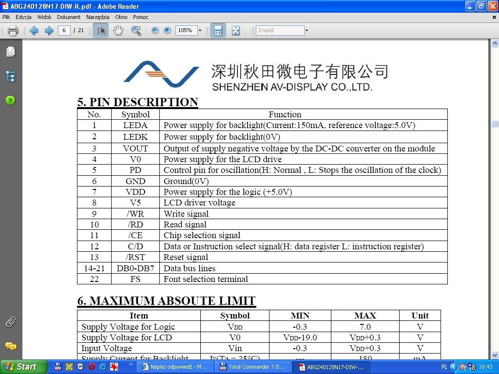 Może spotkał ktoś się już z tym wyświetlaczem i wie jak go podłączyć pod atmega 128 lub 32. Miałem zamiar dzisiaj zabrać się za podłączanie lecz lcd był dość drogi i szkoda by go było unicestfić przez głupi błąd.