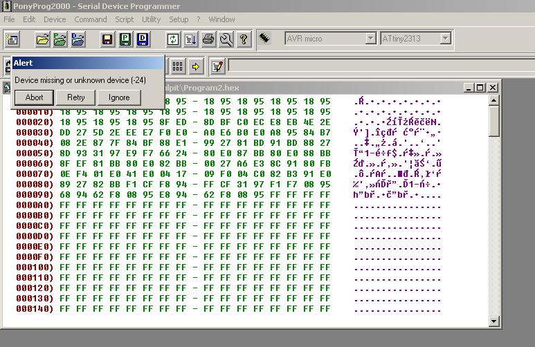 Ostatnio zbudowałem programator na RS232 ( Siprog), żeby zacząć zabawę z µC. Jako µC wykorzystałem attiny2313.