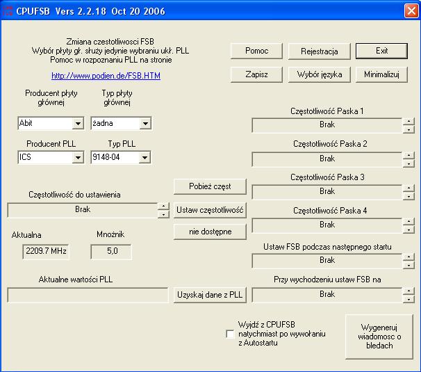 Witam. Mam pytanie jak podkręcić procesor za pomocą programu CPUFSB 2.2.18. Nie znalazłem podobnego postu w internecie więc założyłem w końcu przyda się większości ;] Proszę o podanie krok po kroku żeby każdy początkujący informatyk mógł sobie z tym poradzić Oto screen